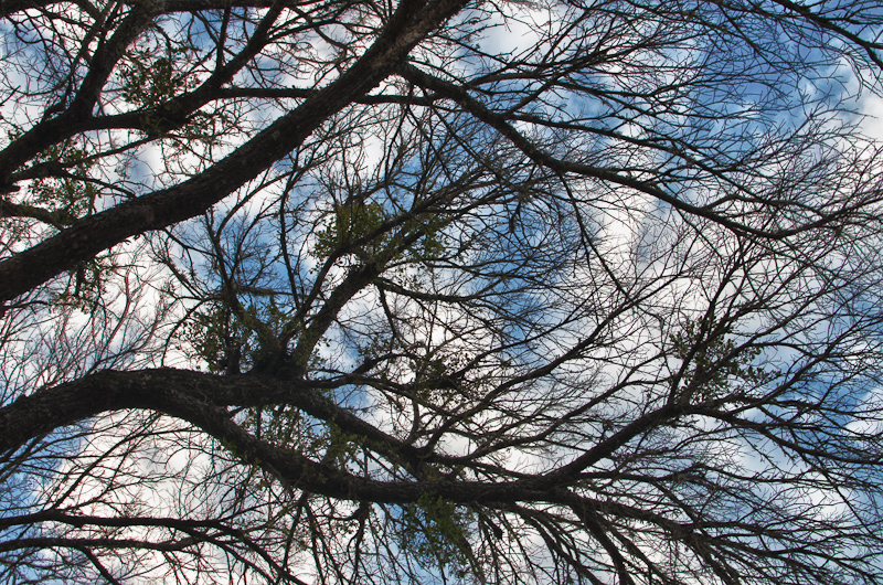I remember seeing those clever photographs of trees that when you look closely there are outlines of things or people in them. So today I managed to take a break and look through the myriad of branches of the tree in the front yard and looked for “things”. You know. Like one of those find the hidden object kind of photographs.