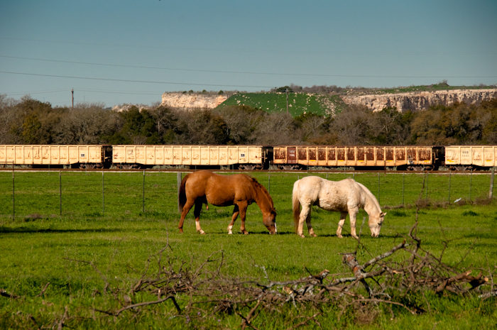 Well, I stopped. Finally. But it’s not quite the picture I intended. I saw the field, the horses and railroad cars – I did NOT see the telephone wires.